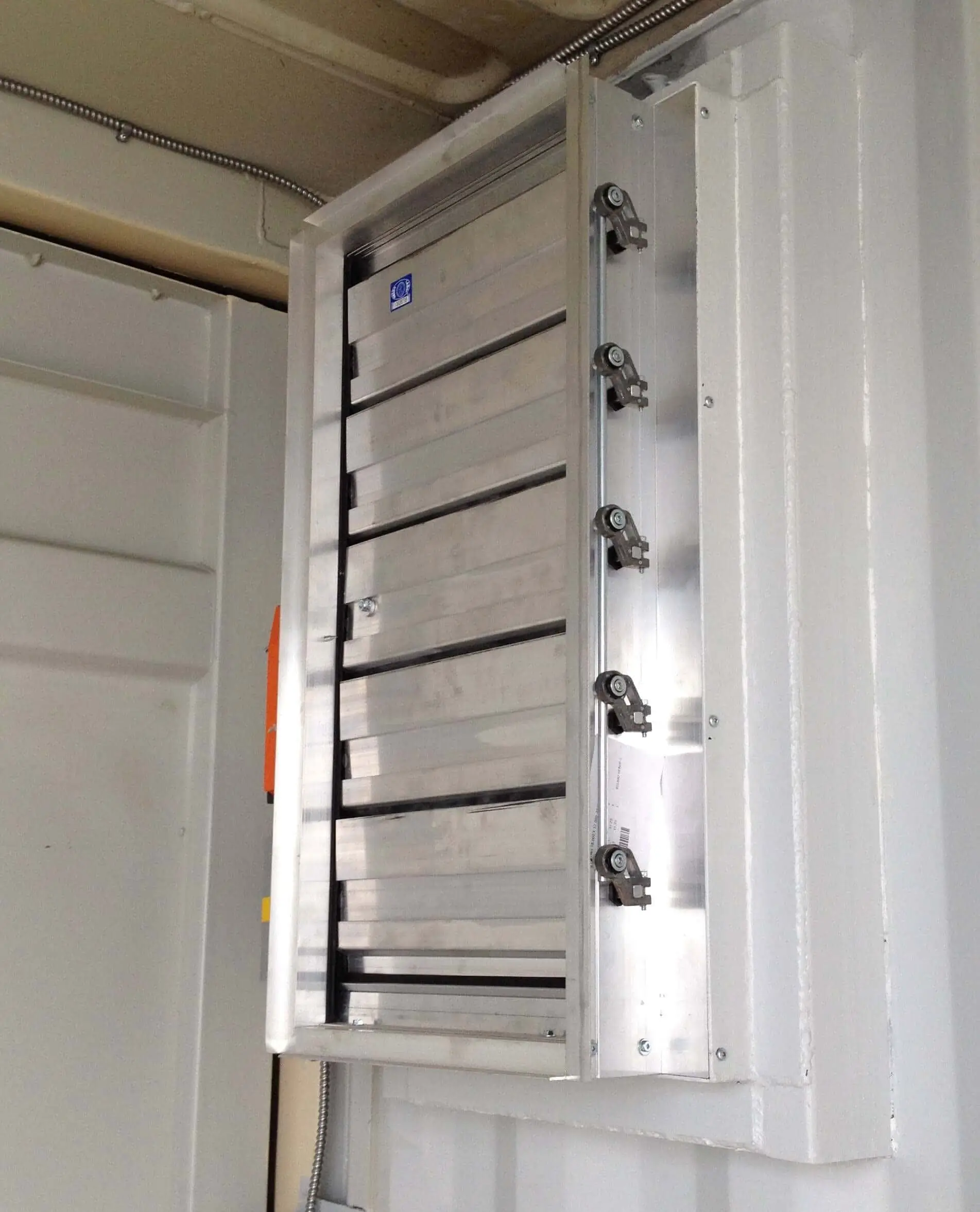 Barrie offers different ventilation solutions for any size and any type of shipping container. Our solutions are designed to increase airflow inside the container in order to reduce humidity, condensation and mold from forming. Our basic ventilation units are made out of fixed aluminum louvres whose size can be customized upon request. We also offer powered ventilation with multi speed and automated damper control. As fresh air intakes, we offer custom aluminum dampers, fixed louvers in standard size of 16″ x 16″ or 24″ x 24″, but that too, can be customized upon request.